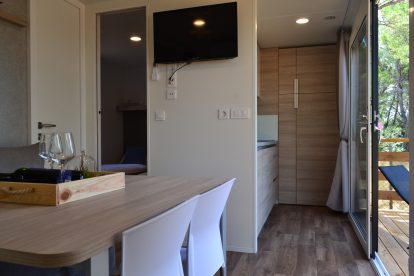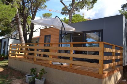 Für alle, die auch im Urlaub nicht auf ein Apartment nicht verzichten wollen, bietet sich ebenfalls auf dem Gelände das mobile Heim an. Das sogenannte X-Line mobile Haus von (4+2) mit 32m2 sind voll möbliert. Die über zwei Schlafzimmer, komplett ausgestatteter Küche, Wohnzimmer und zwei Toilette verfügt. Das Haus verfügt ebenfalls über einer Terrasse mit einem überragenden Blick. X-line Mobiles Haus ist mit einem Tv a, Wi-fi und Klimaanlage ausgestattet. Die mobilen Häuser befinden sich 100 Meter von der wunderschön Küste und 1500m von der Innenstadt Makarska entfernt.