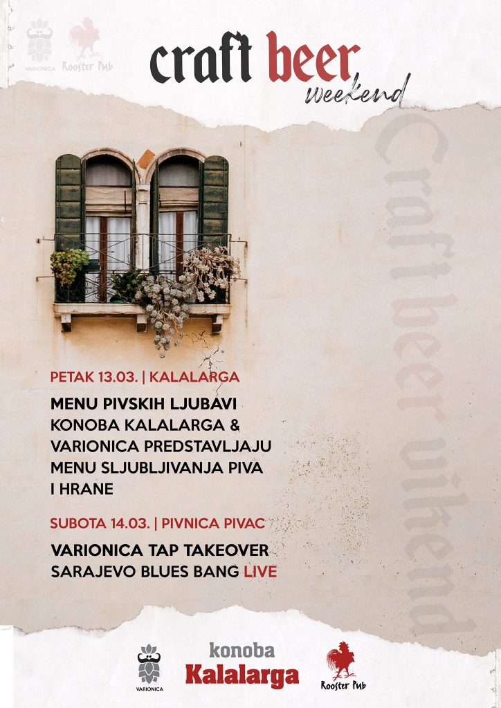 Diesen Freitag, 13.3. Die Kalalarga & Varionica Tavern bietet ein Menü, auf dem Sie die Möglichkeit haben, die Kombination aus Essen und Bier zu probieren. Am Samstag übernimmt Varionica die Bar Pivnica Pivac und Sarajevo Blues knallt alles andere! Wir sehen uns!