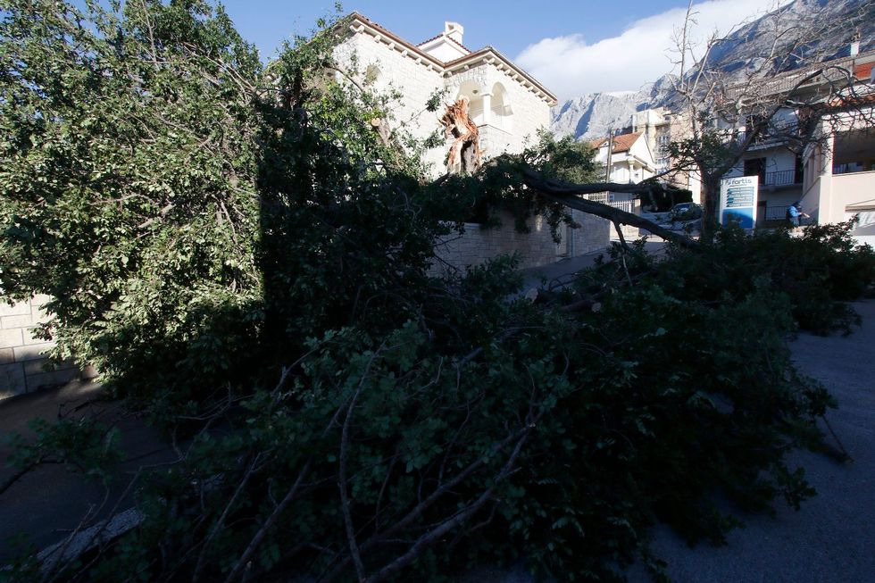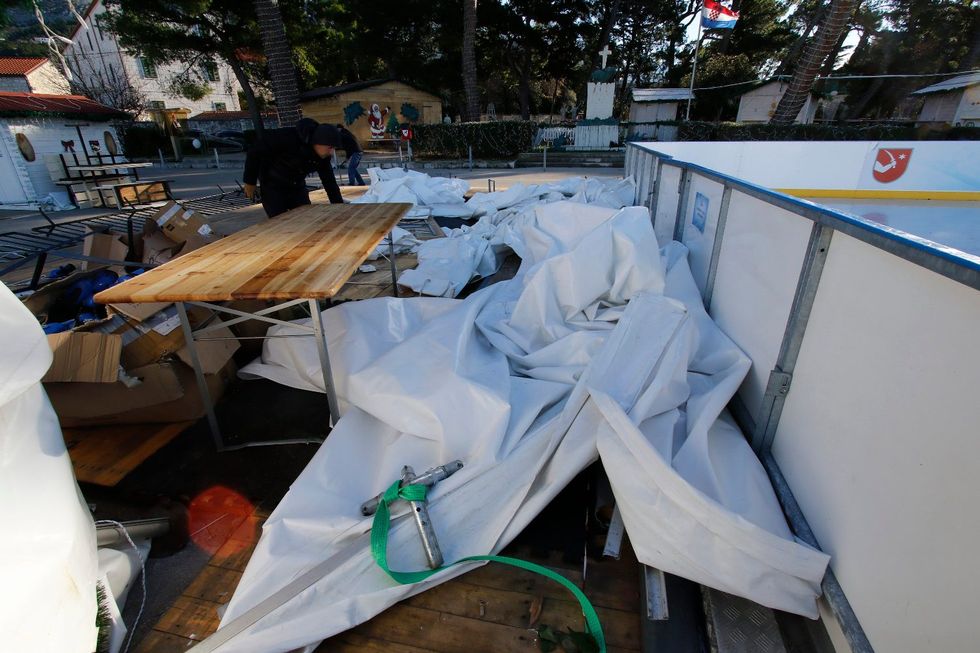 Die Bura bereitete Makarska an Heiligabend große Probleme. An den Bildern kann man unschwer erkennen wie eingestürzte Bäume und Beschädigungen an der Fassade des Hotel Parks sowie am Weihnachtsmarkt zu sehen sind. Bilder Ivo R./Cropix