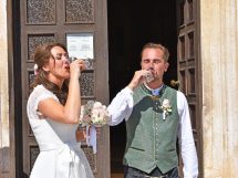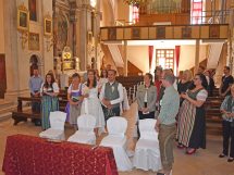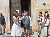 Aus der Kirche war das Brautpaar von den Familien und Freunden als auch von 2 Damen die in dalmatinischer Tracht das Brautpaar nach dalmatinischem Brauch einen Aperitif baten.