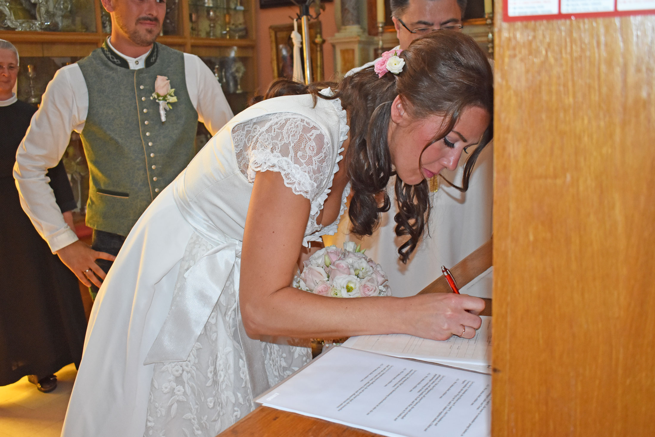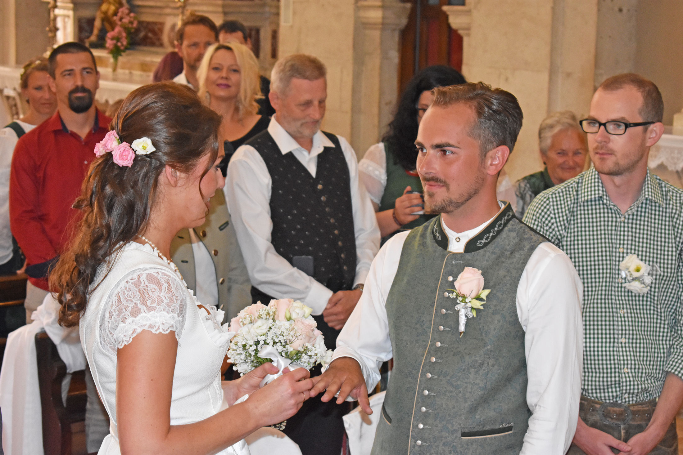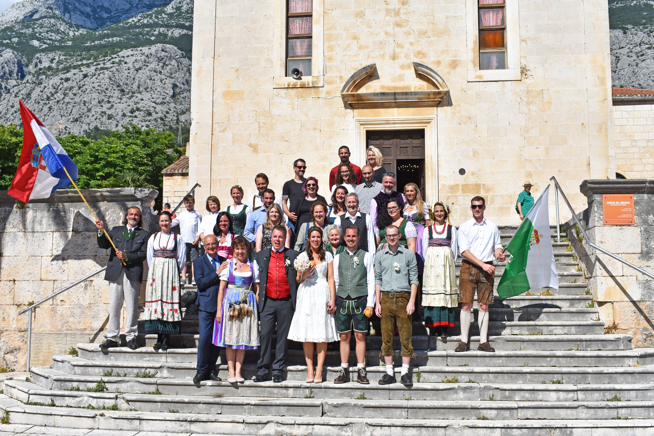 Anna Wiesinger-Krenn und Paul Wiesinger haben sich letzten Freitag in Makarska das JA Wort stilgerecht in Tracht begleitet von der kroatischen als auch Steiermark Fahne. Nach dem Standesamt in Graz wurden alle Vorbereitungen zur kirchlichen Feier in Makarska bereits getroffen. Vor rund 40 geladenen Gästen, darunter der engste Familienkreis aus Österreich, den Freunden aus Rumänien und dem extra aus Philippinen angereistem Trauzeugen.