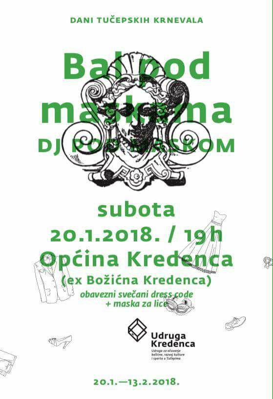 Der Verein “Kredenca” aus Tučepi veranstaltet im Rahmen der Schlüsselübergabe an die Narren diesen Samstag am 20. Januar 2018 um 18 Uhr einen Maskenball. Somit können alle an dieser Veranstaltung teilnehmen. Für gute Stimmung sorgt DJ Maske.