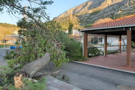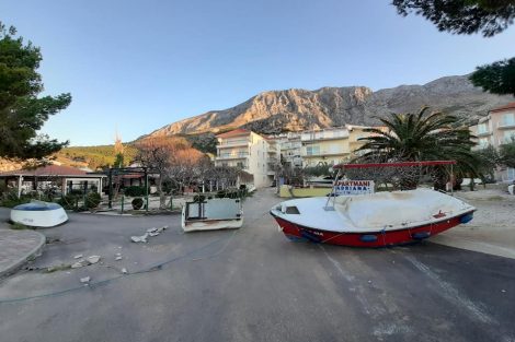 Das Neue Jahr und besonders der Januar war wirklich sehr gut in der Makarska Riviera, und man konnte sich wirklich den schönen Sonnentagen im Januar einfach nicht genug bekommen. Allerdings folgte im Februar ein heftiger Bura (Bora) Wind mit Orkanartigen Böen mit bis zu 170 km/h. Sämtliche Fährlinien wurden eingestellt und man musste ausharren. Während der Nacht vom Mittwoch auf den Donnerstag nahm die Bura ihre Geschwindigkeit zu. Wie man unschwer auf dem Video erkennen kann, fügte auch dieser Wind einige Schäden wie etwa umfallende Bäume als auch das Stürzen eines Kranes bei Hotel Romana mit sich mit. In der nachfolgenden Fotoserie können Sie auch die Schäden in Živogošće sehen.