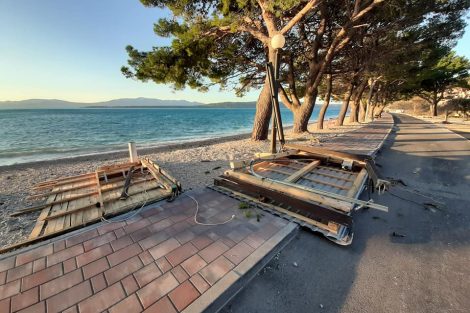 In Zivogosce kann man anhand der folgenden Bilder erkennen, mit welcher Wucht die Bura über die Rivier fegte.