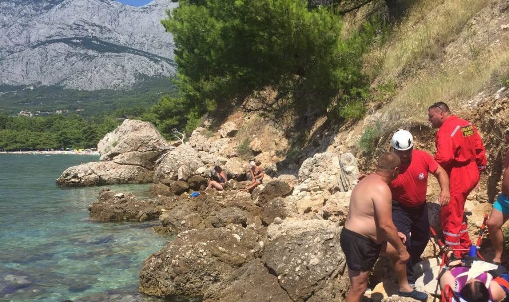 Manchmal ist es auch gefährlich zum Schwimmen. Eine Frau rutschte gestern in Podgora beim Garma Strand aus und fiel in die felsigen Ufer.